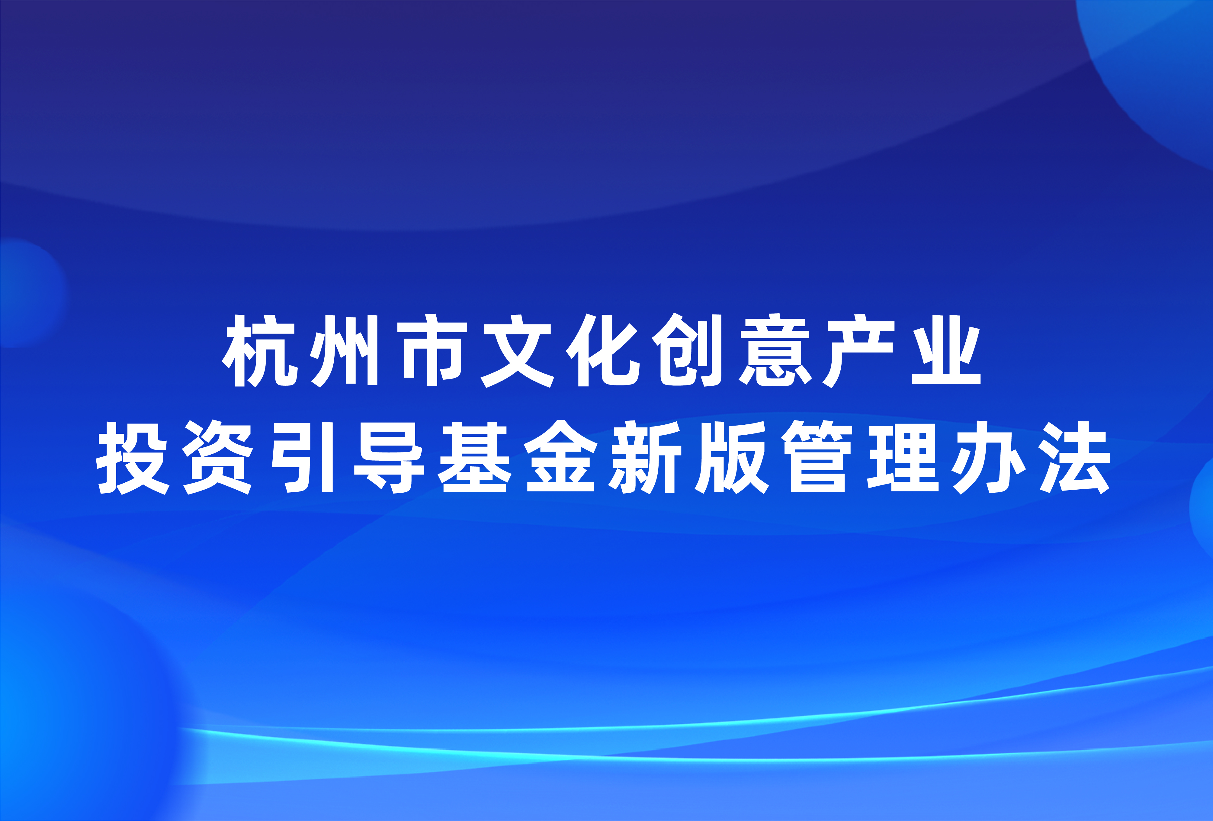 杭州市文化创意产业投资引导基金新版管理办法出台
